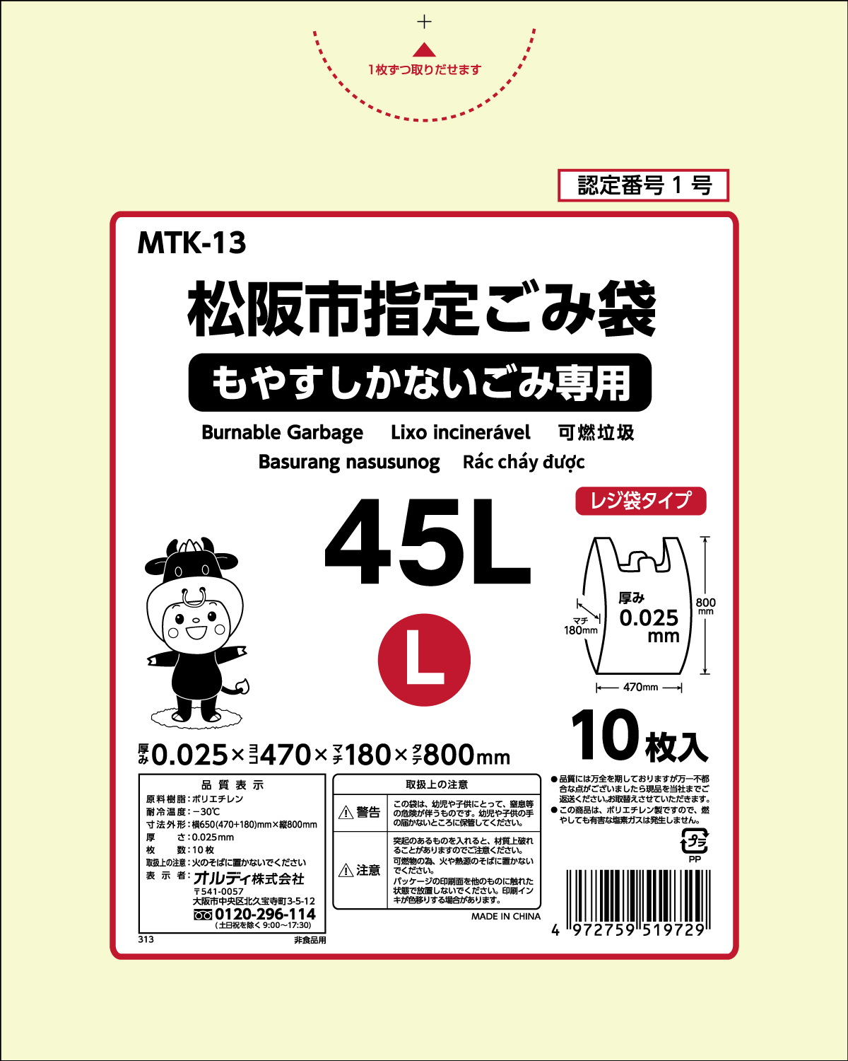 松阪市指定もやすしかないごみ45L 10P レジタイプ