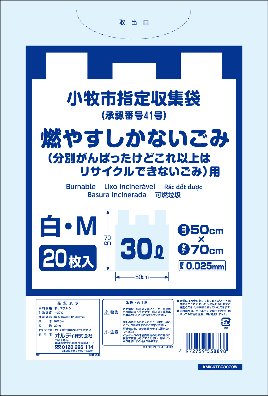 小牧市燃やすしかないごみ袋白M 30L 20P