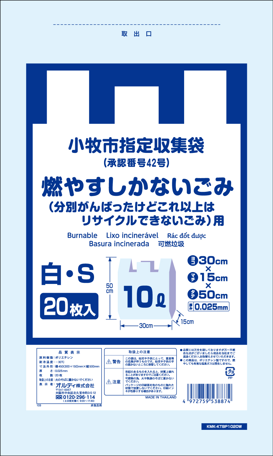 小牧市燃やすしかないごみ袋白S 10L 20P