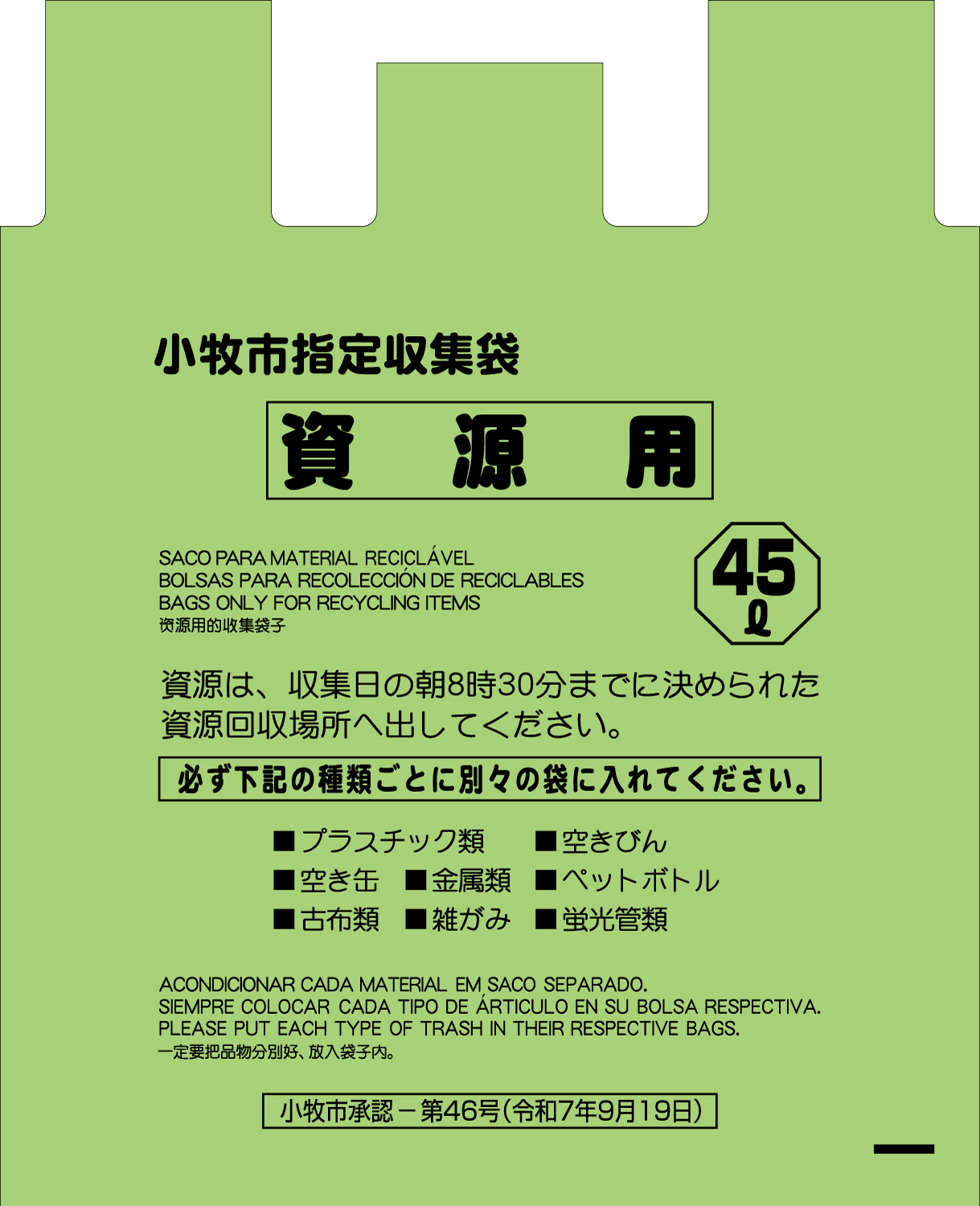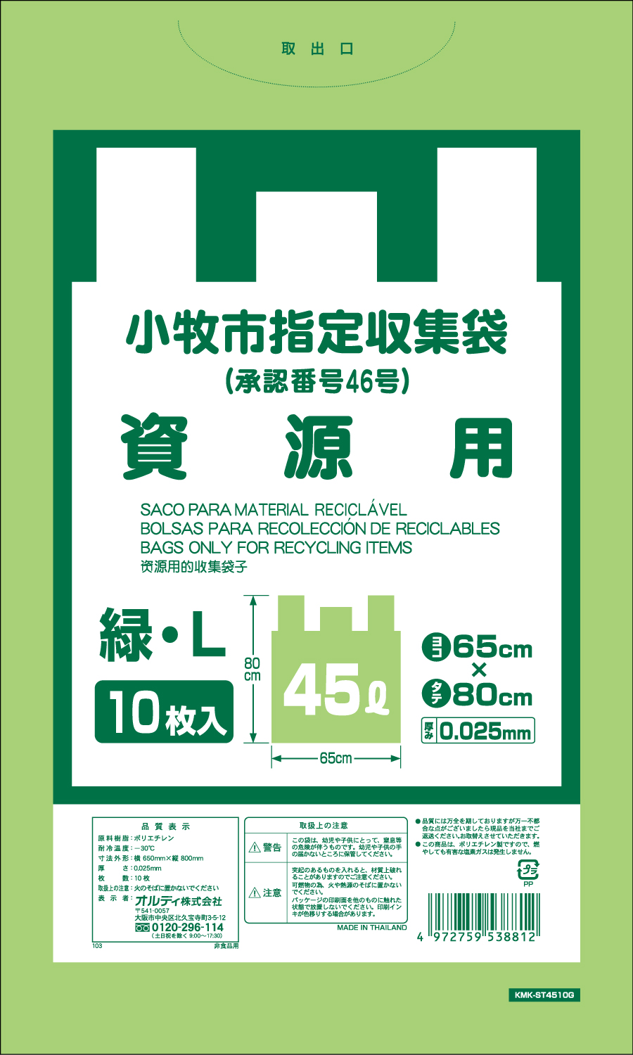 小牧市資源用袋緑L 45L 10P